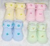 Flower Decoration Baby socks'Product Description: 1.Name:Flower Decoration Baby socks 2.Modle NO.: TA06 3.Size:3/6/9 4.Color:pink,light blue,yellow,green 5.Material:75% cotton, 12% polyester, 3% spandex 6.Season:All Season 7.Characteristic: a. Breathable b. Anti-Foul c. Sweat-Absorbent d. Eco-friendly